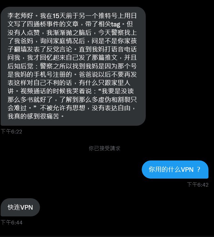 用快连被请喝茶的还不少,黑名单+1。