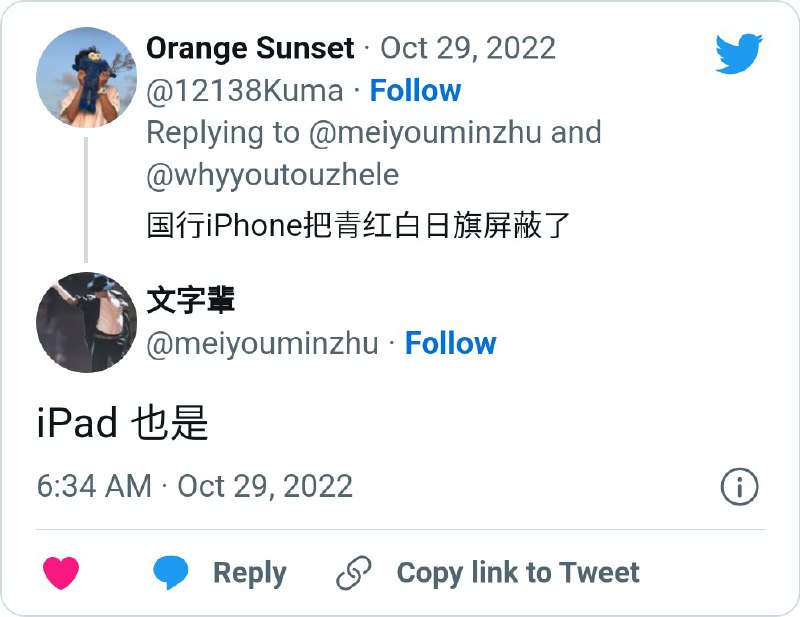 顺带一提,推特有大量墙国的便衣警察,这种情况不会因为